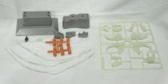 飾り台、蓄光パーツ、ゴムキャップ、透明チューブ。