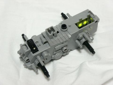 前からブロックスジョイント凹2個、回転軸、BFのバックパックが装備可能な四角凹ジョイント。