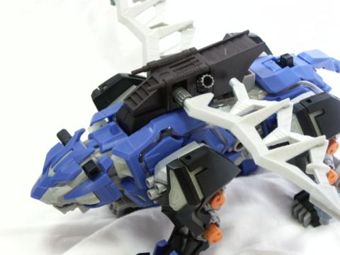 フォルムはまあ、割と普通、全体的なバランスとしては爪が少し気になる程度でしょうか。脚部装甲など組み立てにくいところは多少あるものの、ボリューム的にはそれなりに納得できる物かと思います。デザインも特に破綻しているわけでもなく、本体装甲の曲線ラインなど、セイバータイガーなどを連想させるきれいなラインとなっています。